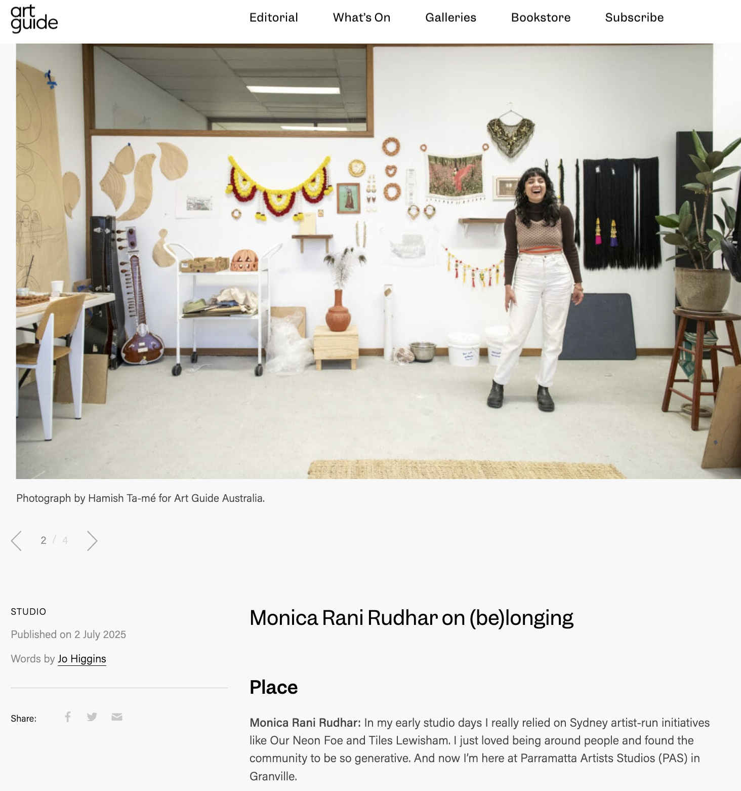 - Jul 2, 2025 Art Guide Australia: Studio profile of Monica Rani Rudhar Jul 2, 2025
